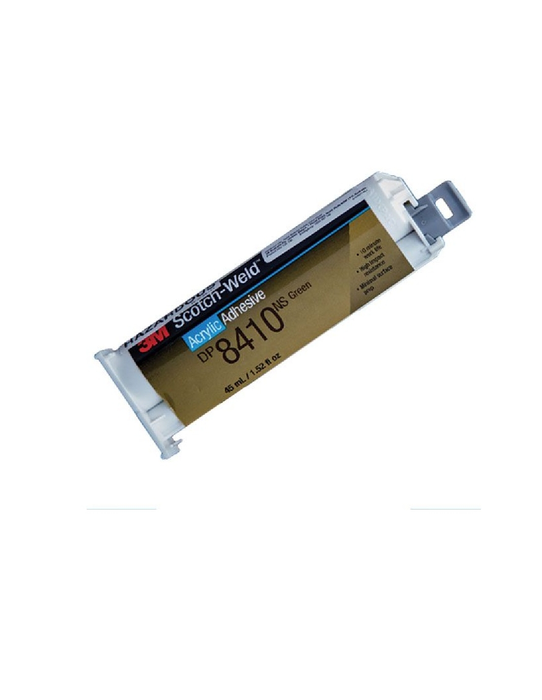 L’adesivo acrilico bicomponente 3M™ Scotch-Weld™ DP8410NS offre eccellente stabilità sotto carichi statici e dinamici, con una vita utile di 11 minuti e manipolazione rapida in 36 minuti.